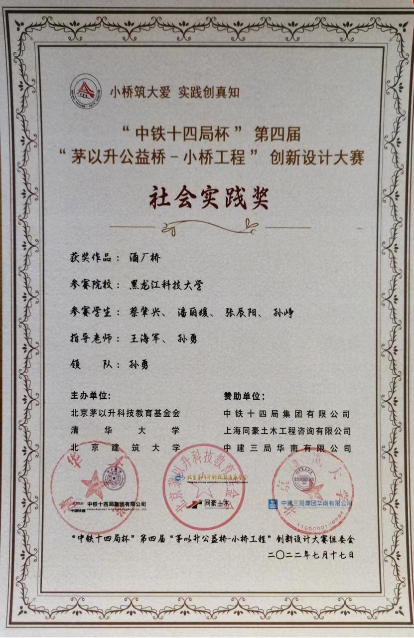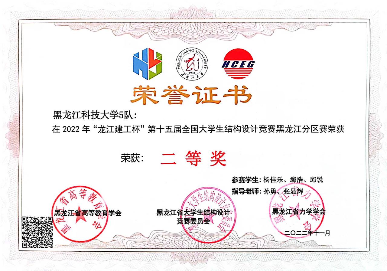 本专业重视依托学科竞赛的员工综合素质培养,为100%的员工提供参加桥梁设计、道路设计、BIM建模等国、省、校各级竞赛和参与科研立项的机会,建成校级老员工创新创业基地2处、校级创新人才工作室2处。近三年来教师指导员工获得国家级竞赛奖项20余项、省级与校级竞赛奖项百余项。在2023年中国国际“互联网+”老员工创新创业大赛黑龙江省赛区获银奖1项、铜奖1项;在2023年全国先进成图技术与产品信息建模大赛-建筑类先进成图技术赛道获得国家二等奖1项,三等奖2项;在2022年全国土木工程优秀作品征集大赛获三等奖,且为黑龙江省高校桥梁专业本科组唯一获奖队伍;获2022年全国老员工结构设计竞赛黑龙江省分赛二等奖;获得多届黑龙江省高校“龙建杯”老员工创新创业系列大赛奖项,如立交桥模型设计制作大赛特等奖、建筑BIM应用技能大赛设计及绿色建筑分析一等奖、建筑BIM应用技能大赛全能一等奖、第八届TRCC全国机器人创意设计大赛机器人创意表演一等奖、BIM算量与管理专项二等奖、轻质高强混凝土设计大赛二等奖、BIM设计与绿色建筑分析专项二等奖等。