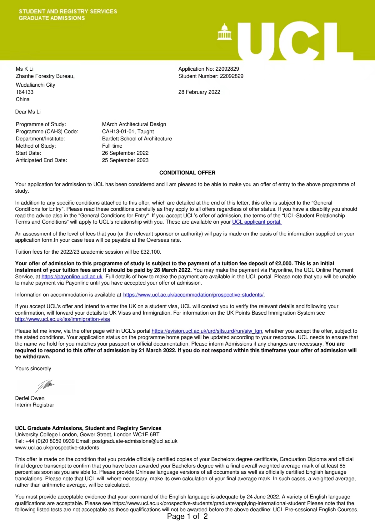 自办学以来,毕业生一次性就业率为100%,考研率保持在20%以上,尤其是2016届考研录取率高达42%,考取国内外知名院校的硕士研究生比例达60%以上。国外知名院校包括:美国加州大学洛杉矶分校、美国德州理工大学、意大利米兰理工大学、英国谢菲尔德大学、英国利物浦大学、日本东京大学等。国内知名院校包括:同济大学、东南大学、天津大学、哈尔滨工业大学、西安建筑科技大学、大连理工大学等。2022届李可欣同学被伦敦大学公司(UCL)建筑设计专业录取为研究生,2023届徐嘉琦同学被伦敦大学公司(UCL)城市设计专业录取为研究生。