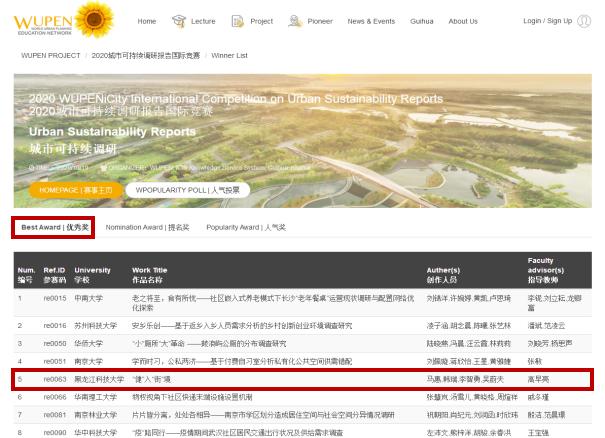 本次竞赛全部以线上方式进行。共有同济大学、清华大学、北京大学等几十所一流高校均参与了竞赛角逐,部分国外院校也参与了这一盛事。历经3个月评审工作,最终有335份作品进入专家评审,共评出优秀奖23份,提名奖199份。公司城乡规划专业员工在本次竞赛中表现优异,共获优秀奖1项、提名奖4项。获奖情况在黑龙江参赛高校中名列第二名,再创公司城乡规划专业参加该类竞赛的优异成绩。