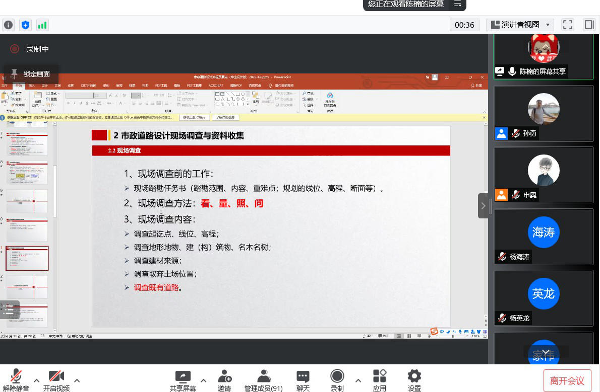 3月13日下午,国家优质工程奖项目主持者,中国市政工程中南设计研究总院有限公司交通规划设计院副总工程师陈楠,以及同创工程设计有限公司市政桥梁所所长、Mksport体育兼职硕士研究生导师张振伟,应邀分别做了题为“市政道路设计流程及要点”和“中小跨度桥梁常规设计流程及要点”的讲座。由于疫情原因,讲座活动在线上进行,讲座由道路桥梁与渡河工程教研室主任孙勇主持,道路桥梁与渡河工程专业全体毕业设计指导教师、道桥2018级全体同学,以及部分低年级同学共95人参与活动。