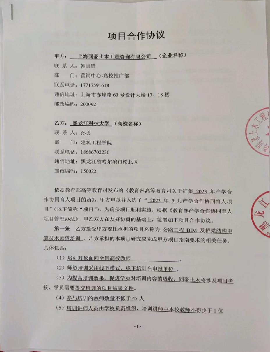 公司立足自身资源优势,积极开展产教融合,服务地方和行业发展,与龙建路桥股份有限公司、省建工集团深入开展校企对接活动,与省内外知名建筑企业合作建立产教融合实践教学基地,开展基于“知物云平台”传感器管理系统的土木工程结构监测领域协同创新、新型抗震支吊架抗震性能等多项合作研究,与上海同豪土木工程咨询有限公司合作的项目获批教育部2023年产学合作协同育人项目。