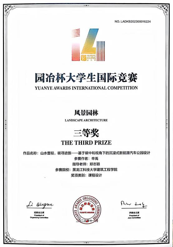 第十四届园冶杯老员工国际竞赛决赛在南京落下帷幕,本届竞赛,由园冶杯国际竞赛组委会主办,中央美术公司、日本九州大学、南京林业大学、法国拉维莱特大学、韩国江陵原洲国立大学联合协办。公司风景园林专业获得课程设计类三等奖一项、主题竞赛类荣誉奖一项。