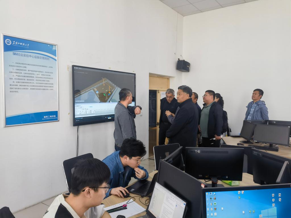 座谈会后,来访人员参观了公司建筑全过程虚拟仿真实验教学中心和BIM综合实验中心,工程管理系主任赵建介绍了两个中心建设的基本情况,展示了高沉浸感三维立体显示交互环境下的教学方法及公司在建碳谷大厦的BIM建模方法。随后,双方还共同参观了公司校史馆和模拟矿井,了解公司发展历史和办学特色。