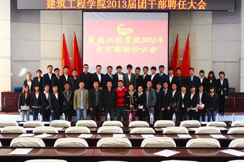 本次聘任大会在激昂的中国共青团团歌中拉开帷幕。会上,姜海洋老师宣读了2013届团干部聘任决定,共聘任团干部39名,其中院团委12名、院老员工科技协会15名、院英语口语协会12名。与会领导和老师向各组织任职代表颁发聘书。新任院团委副书记敖琦代表全体受聘团干部做任职发言,新任院老员工科技协会主席王美达带领全体新任团干部面向团旗做任职宣誓。
