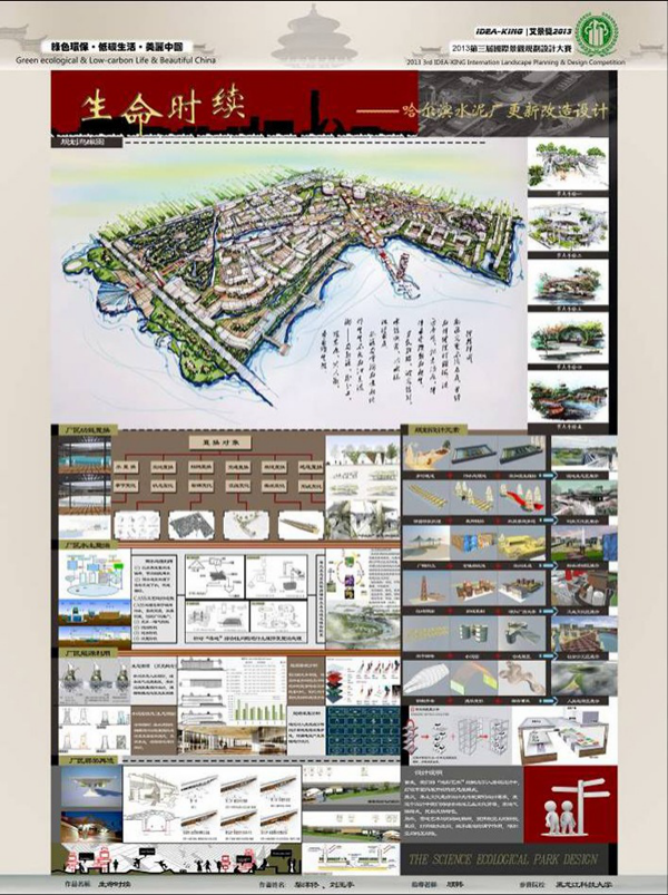 2013年3月18日至10月30日举行了2013年“艾景奖?第三届国际景观规划大赛”,该项赛事由国际园林景观规划设计行业协会(ILIA) 、 中国建设报社、北京林业大学教育基金会等共同主办。大赛以“绿色生态?低碳生活?美丽中国”为主题,内容涉及城市规划设计、旅游度假区规划、居住区环境设计等方面。本次大赛中,同济大学、东南大学、哈尔滨工业大学、华南理工大学、墨尔本皇家理工大学、韩国首尔大学等184所国内外高校、共计5618个组别参加了本次比赛。公司MKsports城乡规划专业(原城市规划专业)的员工首次参加了此次比赛,在李冬梅、夏宏嘉等老师的指导下,公司4名员工凭借优秀的方案设计能力、过硬的图面表现能力及良好的心理素质,经过层层评选,激烈的竞争,最终获得骄人的战绩。黎洋佟、刘玉亭设计的“生命时续”——哈尔滨水泥厂更新改造设计,宣磊、杨春玲设计的“绿廊时光 滨水明珠——基于城乡和谐视角的哈尔滨船厂地块城市设计”均获得此次大赛城市规划设计组的银奖,开创了公司在此类国际大赛中获得优异成绩的先例。