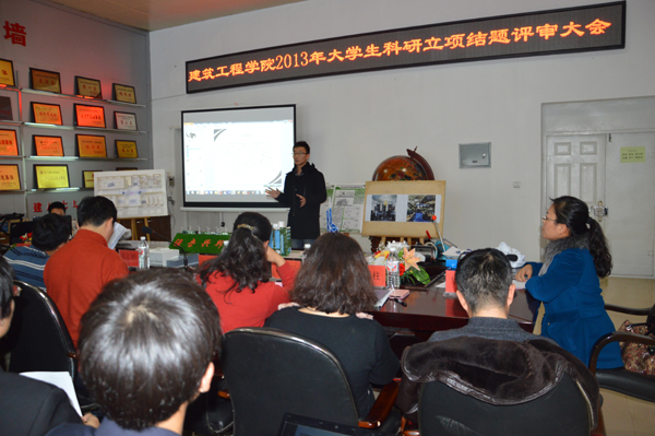 参加结题评审会大组公开答辩的共计13组立项,他们是公司2013年老员工科研立项科研结题成果中一部分代表。会上,各科研项目组的负责人利用PPT依次针对自己的项目研究过程、创新之处及取得的成果进行5分钟左右介绍,并结合模型、论文、效果图进行重点讲解,自述后回答评审老师的提问。参加答辩的13组项目研究内容新颖、创新点多,能够紧密结合社会热点和专业特点,具有较大的社会现实意义,结题成果丰富,有的在《中国科技信息》、《山西建筑》等国家级期刊上发表论文,有的用精雕机雕刻组装制作出精美的模型,有自己绘制的详细效果图和收集整理的调研报告。在参与答辩的人员中,建筑学11-2班陈美琦同学的项目——Mksport体育宿舍改造构想及模型制作,讲解生动详细,流利自然,模型制作精美,论文在《山西建筑》发表,结题成果丰富,得到了评审老师的一致好评和高度赞扬。会后,建工公司将分12组进行小组答辩,严把结题评审关,并为每个顺利结题项目的指导教师和项目组成员颁发结题证书,高要求、高质量、高水平地完成公司2013年的老员工科研立项结题工作。